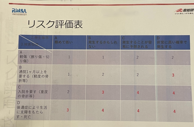 「リスク評価表」で危険を見える化
