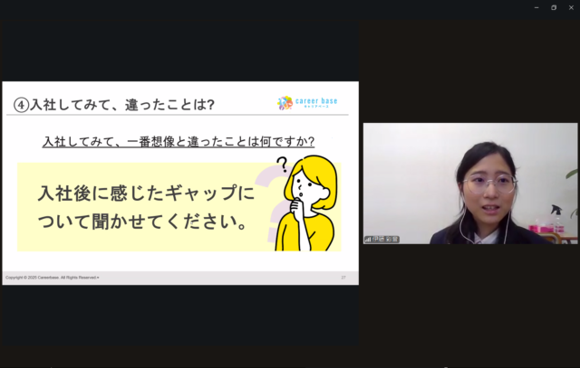 学生から社会人になる中で感じたギャップや、人間関係の築き方について率直に話してくれました。