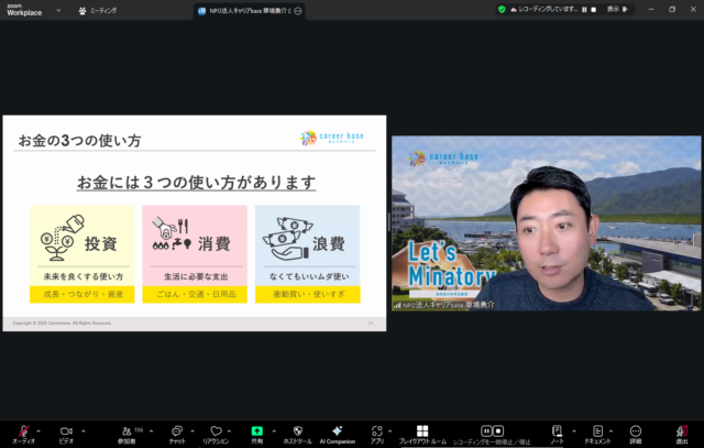 今回のメインテーマの一つが「お金」の話です。「お金は道具であり、使い方次第で良くも悪くもなる」という視点から、具体的にお話しいただきました。