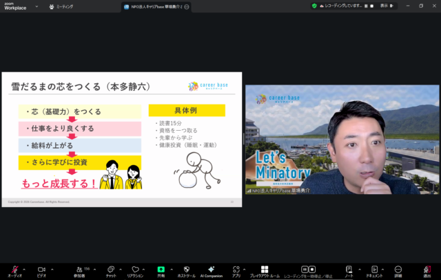 令和7年度進路セミナーの最終回となる本日(2026年1月21日)は、「社会に出る前にやっておくこと」をテーマに、キャリアbase代表の草場が講師として登壇しました。